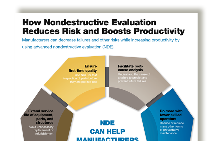 Download this infographic from EWI to learn how manufacturers can employ nondestructive evaluation to not only reduce risk, but understand and predict its root causes. The infographic also contains several short case studies on additional benefits delivered through successful implementation of NDE.